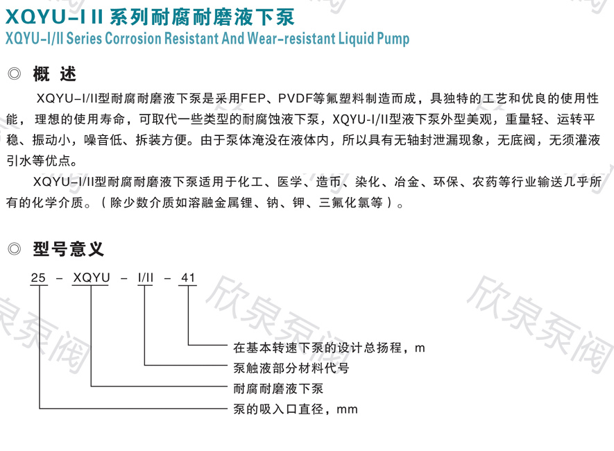 XQYU-ⅠⅡ系列耐腐耐磨液下泵